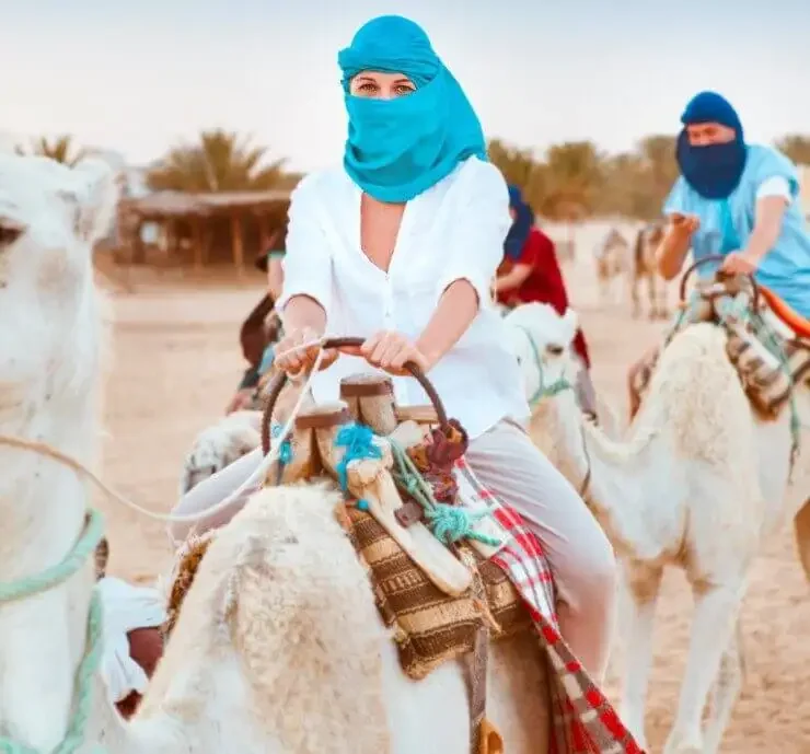 Partez à dos de dromadaire pour une balade paisible et authentique. Villa Roswell vous propose cette activité à Marrakech en version coucher de soleil ou matinée, pour un moment magique digne d’un conte oriental.